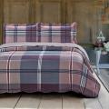 Σετ Κουβερλί με Μαξιλαροθήκες oxford style, microfiber με βαμβακερή βάτα, εμπριμέ, μπλέ καρώ και γραμμικό, πολύγαζο σχέδιο