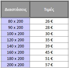 Τα ανωστρώματα με διαστάσεις 100x200 και 180x200 είναι ετοιμοπαράδοτα ενώ οι υπόλοιπες διαστάσεις χρειάζονται ένα μήνα από την επιβεβαίωση της παραγγελίας. Ελάχιστη παραγγελία 25 τεμάχια ανεξαρτήτως διάστασης.